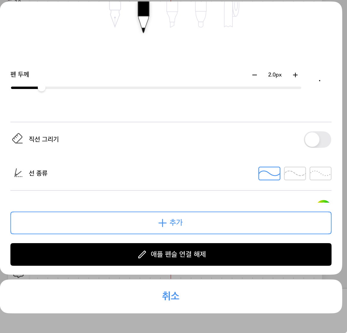 펜슬 툴에서 플러스 버튼 한번 눌러주시고